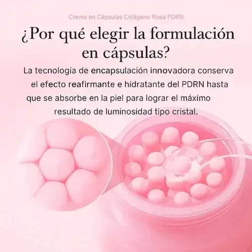PDRN Pink Collagen Capsule Cream es una crema facial de última generación diseñada para revitalizar, hidratar y mejorar visiblemente la textura de la piel desde la primera aplicación.